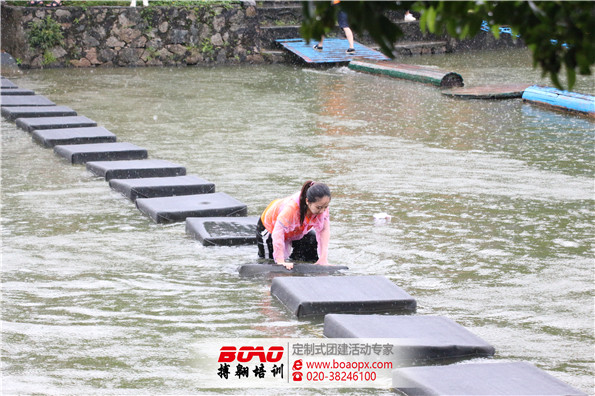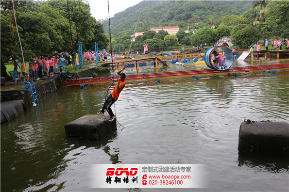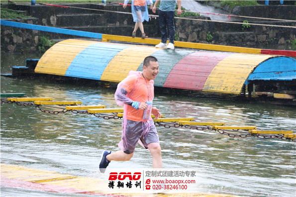 一大早,各位伙伴進場后領取活動必備裝備禮品,在教練活動前的開場環(huán)節(jié),很快場地就傳來了陣陣笑聲;在一曲“小蘋果”的音樂中,全場共舞,讓整個活動進入的一個高潮階段,就連這時候下起的小雨也變成了一種氛圍的烘托;雨中,大家轉場室內進行“包餃子PK”,每組4位伙伴以最快的速度完成50個水餃,令人震驚的是某個小組完成這項任務僅僅用的2分鐘,堪比餃子館老板啊,點贊!午餐時間到了,每個小組分工合作,野炊、燒烤,還有人專門去我們搏翱小伙伴新開的“什么都有士多店”通過活動中努力賺到的“現金”,講價購買小組需要的物品;午餐后也就是整個運動會的高潮,水上項目挑戰(zhàn)賽,每個小組中的伙伴都參與進來,努力完成一個個水上關卡為小組得分,成功了——全員為小組伙伴喝彩、落水了——小組伙伴有擔心、有鼓勵,落水者肯定會開懷大笑,讓雨中的闖關場地新增色彩。