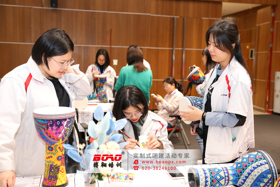搏翱廣州拓展培訓(xùn)公司深刻洞察到,對(duì)于廣汽車身分會(huì)這樣承擔(dān)著高強(qiáng)度、高精度任務(wù)的團(tuán)隊(duì),本次非洲鼓彩繪活動(dòng)的意義,遠(yuǎn)超越一次新奇的藝術(shù)體驗(yàn)。它是一次針對(duì)團(tuán)隊(duì)“心理肌體”的深度按摩與活力激活。首先,它創(chuàng)造了極致的“非語(yǔ)言溝通”與“情緒共鳴”體驗(yàn)。在鼓樂(lè)合奏中,成功不依賴于某位成員的突出技術(shù),而依賴于所有人節(jié)奏的一致與傾聽(tīng)彼此的專注。這種純粹依靠感知與配合達(dá)成的和諧,能迅速建立深厚的團(tuán)隊(duì)信任與默契,這是任何語(yǔ)言培訓(xùn)都難以達(dá)成的效果。其次,它提供了珍貴的“壓力轉(zhuǎn)化”與“創(chuàng)造性表達(dá)”出口。擊鼓是一種有力的情緒釋放,彩繪則是一種靜心的自我對(duì)話。一動(dòng)一靜之間,長(zhǎng)期積累的工作壓力得以疏導(dǎo),團(tuán)隊(duì)成員在創(chuàng)造美的過(guò)程中獲得了巨大的心靈滿足和積極情緒。再者,它打破了固有的團(tuán)隊(duì)角色認(rèn)知。在鼓圈中,沒(méi)有領(lǐng)導(dǎo)與下屬,只有互為依靠的聲部;在畫(huà)布前,沒(méi)有工程師與技師,只有平等自由的創(chuàng)作者。這種角色暫時(shí)消解的狀態(tài),促進(jìn)了更平等、更開(kāi)放的交流。最終,它留下了具象化的團(tuán)隊(duì)文化象征。那些共同奏響的鼓點(diǎn)和親手彩繪的鼓身,成為團(tuán)隊(duì)共享的、可觸摸的輝煌記憶與精神圖騰,持續(xù)提醒著團(tuán)隊(duì)所蘊(yùn)含的澎湃活力與無(wú)限可能。當(dāng)最后一記鼓聲鏗鏘落定,最后一道色彩定格于鼓面,工作坊在經(jīng)久不息的掌聲與充滿成就感的笑容中圓滿結(jié)束。每個(gè)人身邊都立著一面獨(dú)一無(wú)二、由自己參與奏響和繪制的非洲鼓,它們是今天歡樂(lè)與凝聚力的最好見(jiàn)證。