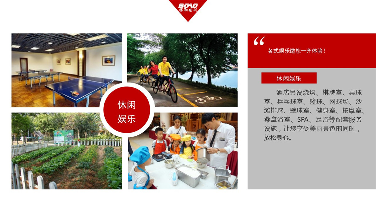 佛山祈福仙湖拓展基地 位于酒店內(nèi),創(chuàng)建于2003年,基地占地2萬多平方米,可滿足1200人同時進行活動,且包含完善的海陸空拓展設施。佛山祈福仙湖拓展訓練基地致力于體驗式拓展訓練,可以舉辦高空拓展項目、地面拓展項目、沙灘拓展項目,環(huán)境優(yōu)美,經(jīng)濟實惠。至今已發(fā)展成為集戶外拓展訓練、室內(nèi)培訓、趣味運動會、企業(yè)年會、戶外活動策劃為一體的專業(yè)拓展培訓機構。仙湖拓展基地曾被授予“青少年拓展實踐基地”的榮譽。
