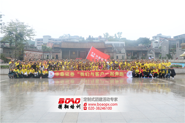 本次活動是針對華泰證券各營業(yè)部開展的一次全員活動,活動主要目的是增進員工間彼此的認識和了解,加強彼此間的溝通和交流,以開心愉悅的氛圍提升團隊凝聚力、向心力。為此,華泰證券聯(lián)合搏翱廣州拓展培訓公司開展了特別的沙灣古鎮(zhèn)奔跑系列活動。