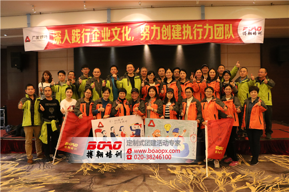 面對(duì)著一年下來(lái)繁忙的工作,廣發(fā)行各職能部門(mén)各支行都在為年初的目標(biāo)努力著、沖刺著,以達(dá)成甚至超越預(yù)定目標(biāo)。同時(shí)為了提升廣發(fā)行員工的核心價(jià)值,有效拓展個(gè)人潛能,提升和強(qiáng)化個(gè)人心理素質(zhì),激發(fā)員工的工作熱情,增強(qiáng)團(tuán)隊(duì)的凝聚力,廣發(fā)銀行廣州分行在2018年12月至2019年1月31日期間舉辦了分行職能部門(mén)及支行員工拓展訓(xùn)練,本次培訓(xùn)的主題是“深入踐行企業(yè)文化,努力創(chuàng)建執(zhí)行力團(tuán)隊(duì)”。