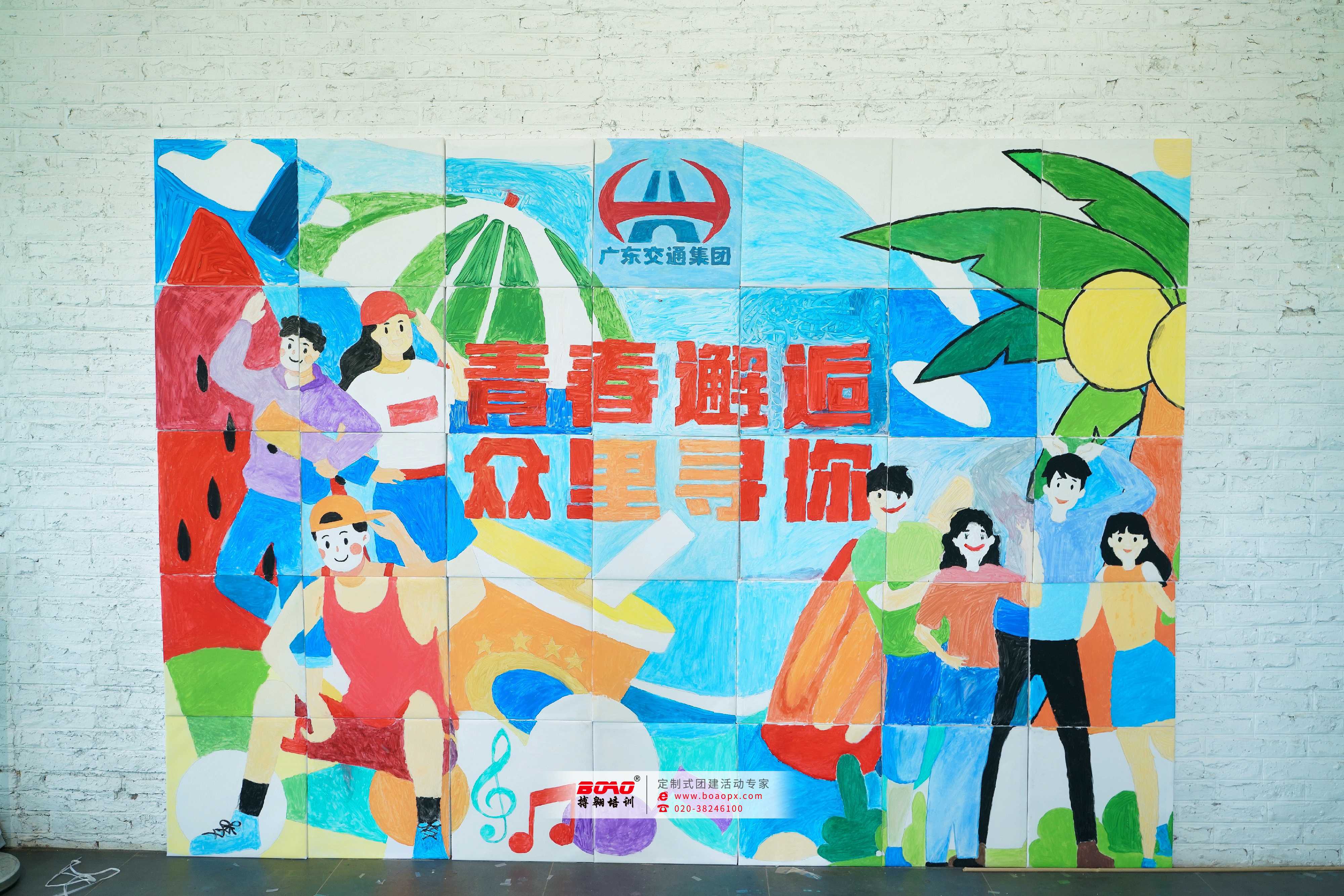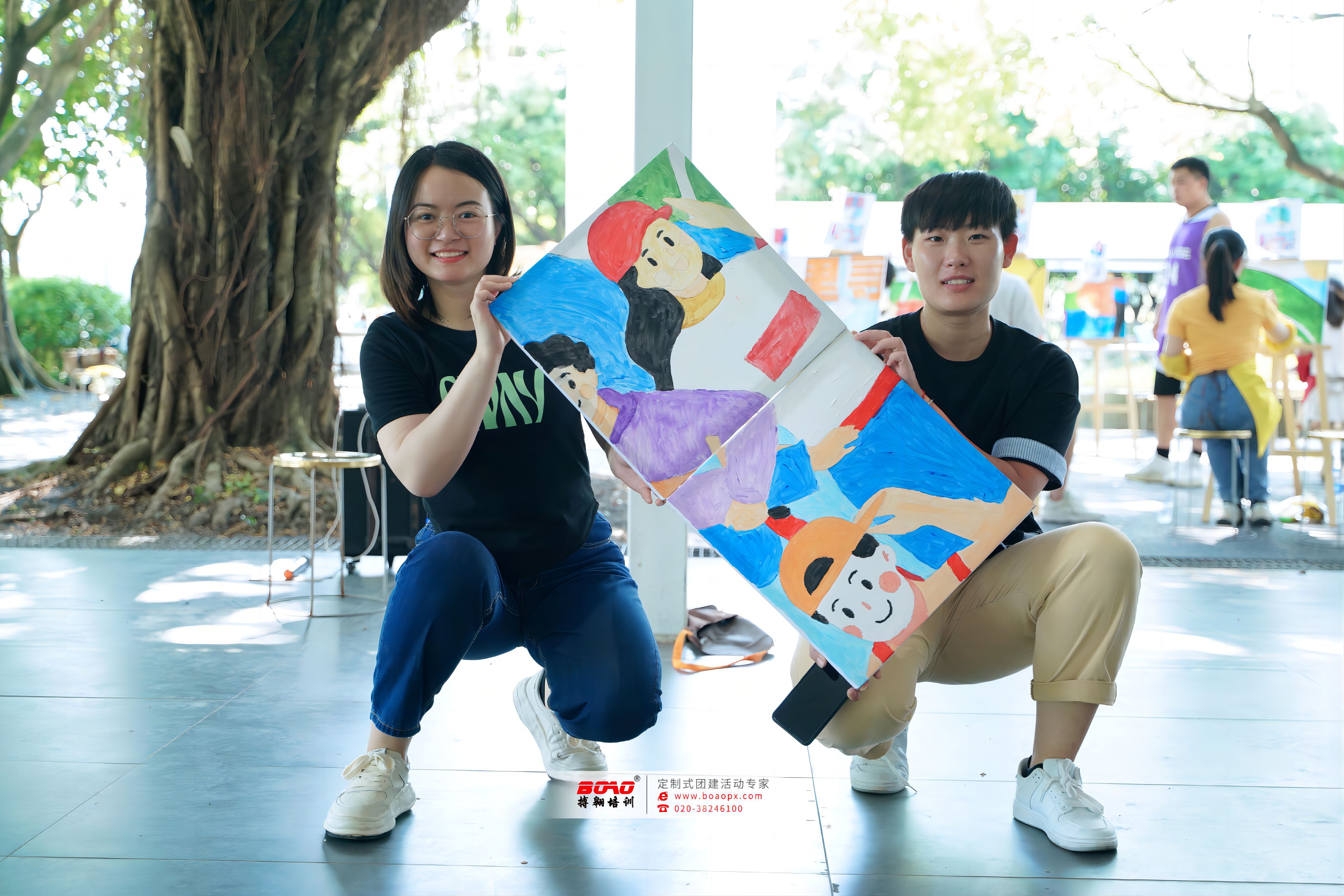 本次拓展的地點為花都寶桑園,搏翱培訓根據(jù)客戶需求和在地的優(yōu)勢為學員設(shè)計了油畫大師主題活動?;顒油ㄟ^在場所有團員的分工協(xié)作,將一幅巨型圖畫合理分配給學員,每兩位學員負責繪制手上的一塊圖畫,在有限的時間內(nèi)完成畫作,每一塊圖畫都是完整的,可以作為單獨的作品展示,拼接在一起后,也可以作為一幅大型的作品展示。