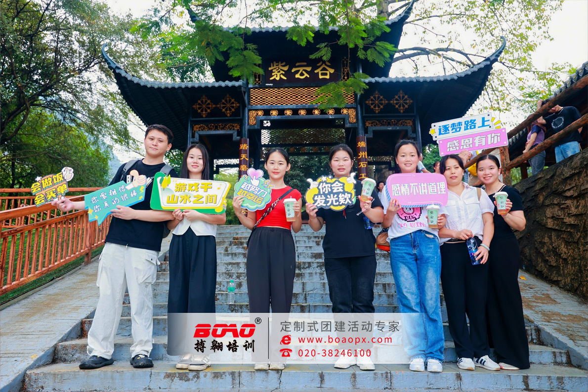 肇慶紫云谷藏于西江羚羊峽省級自然保護區(qū)內(nèi),12000畝原生態(tài)秘境里,清泉潺潺、竹林蒼翠,千年硯坑遺址與疊瀑深潭相映成趣,負氧離子爆棚的自然環(huán)境,成為解壓團建的絕佳選擇。本次拓展以“徒步定向+趣味任務(wù)”為核心,創(chuàng)意造型打卡、你畫我猜、挑戰(zhàn)100分、連連看、手腳并用等豐富環(huán)節(jié),讓每一段路程都充滿驚喜與挑戰(zhàn)。徒步途中,學(xué)員們化身“定向探險家”,沿著溪流步道結(jié)伴前行,沿途的古磨群遺址、鐵索橋、品氧谷都成為打卡點。創(chuàng)意造型打卡環(huán)節(jié),大家發(fā)揮奇思妙想,借助自然景觀擺出團隊專屬造型,快門聲中定格默契瞬間;你畫我猜游戲里,沒有文字的束縛,簡單幾筆勾勒加上隊友的默契配合,行業(yè)術(shù)語、經(jīng)典場景都被快速破解,歡聲笑語回蕩山谷;挑戰(zhàn)100分和連連看考驗著大家的快速反應(yīng)與策略規(guī)劃,隊員們圍坐討論、分工協(xié)作,在規(guī)定時間內(nèi)高效完成任務(wù);手腳并用項目則讓大家拋開拘謹,跟著地面標識靈活移動,肢體的協(xié)調(diào)與隊友的加油聲,讓運動的快樂直達心底。