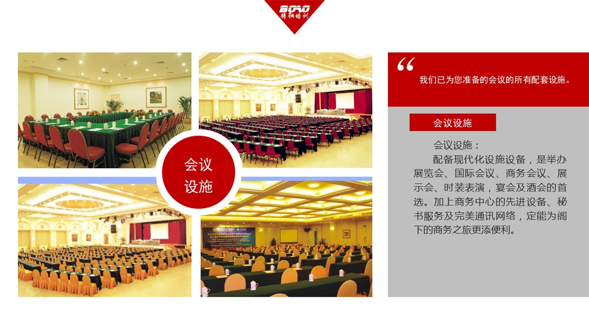 配備現(xiàn)代化設施設備,是舉辦展覽會、國際會議、商務會議、展示會、時裝表演,宴會及酒會的首選。加上商務中心的先進設備、秘書服務及完美通訊網(wǎng)絡,定能為閣下的商務之旅更添便利。